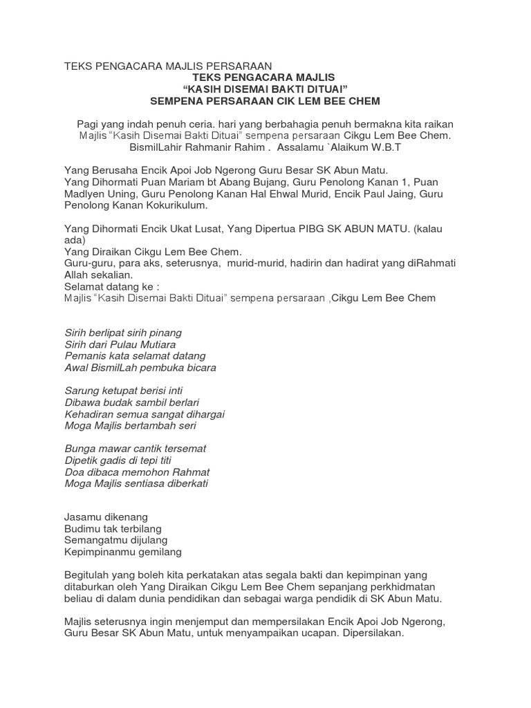 Teks Pengacara Majlis Persaraan Miss Lem Pdf