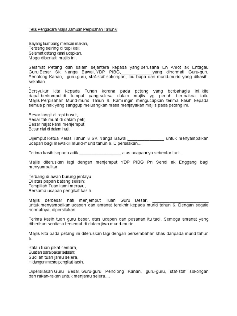 Teks Pengacara Majlis Perpisahan Ringkas Pdf